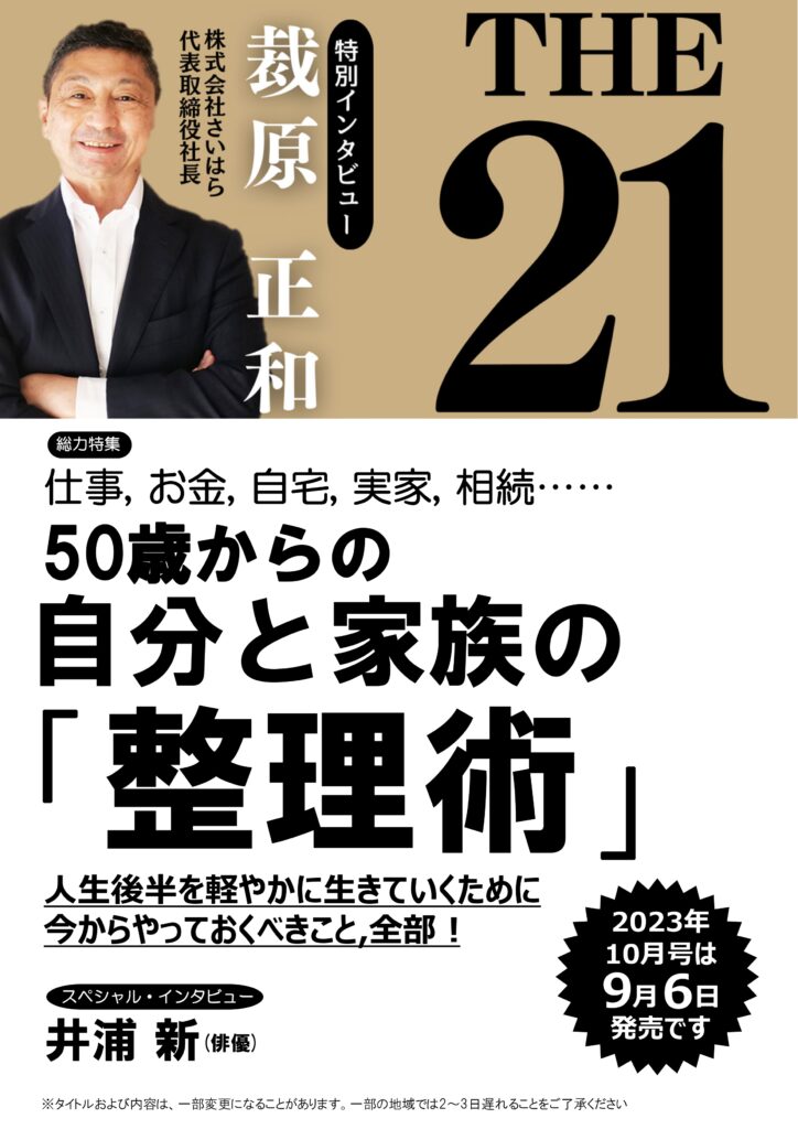 ビジネス月刊誌 “THE21” に『将来、空き家になりそうな実家をどうすべきか?』をテーマに、弊社代表取締役 裁原のインタビュー記事が掲載されました。
